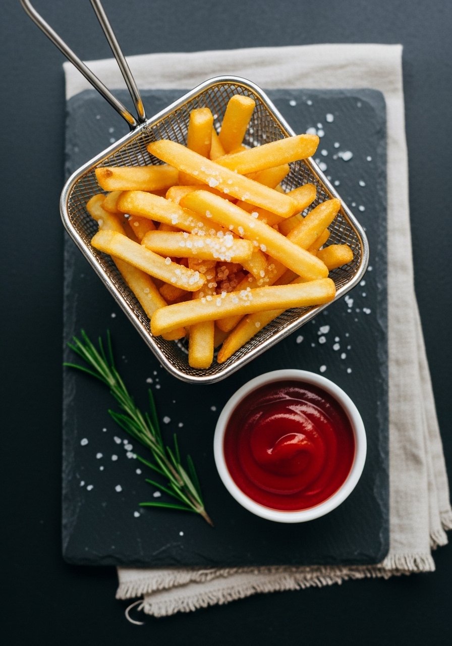 Serve with ketchup, aioli, or a sprinkle of grated Parmesan. Use a small metal basket for batch serving and keep leftovers in glass meal prep containers — reheat 3–4 minutes at 350°F for best texture. Reduce time 1–2 minutes for second batches, since the fryer will be hotter.