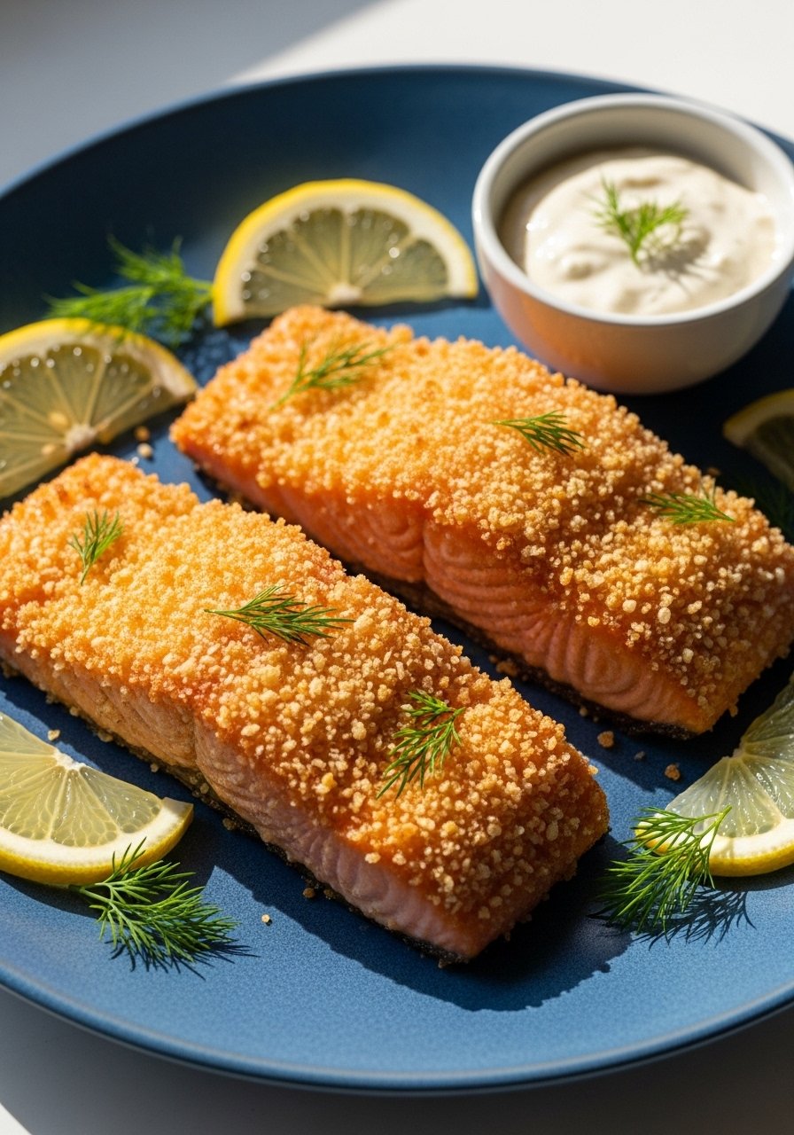 These salmon fillets get a crisp breadcrumb topping while staying moist inside. Using panko mixed with lemon zest keeps the crust light and crunchy. A quick preheat and an instant-read thermometer will help you hit flaky perfection every time.