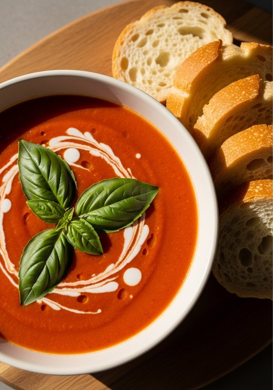 This soup is silky, slightly sweet, and herb-forward. Use canned San Marzano tomatoes for consistent flavor, and an immersion blender makes quick work of pureeing. It’s a comforting beginner recipe that’s easy to adapt to dairy-free diets.