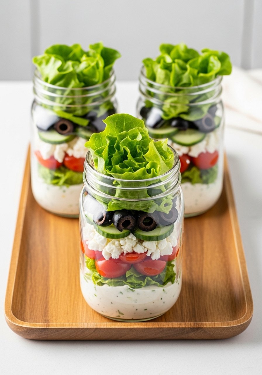 12. Mason Jar Greek Salad (Meal Prep Friendly)