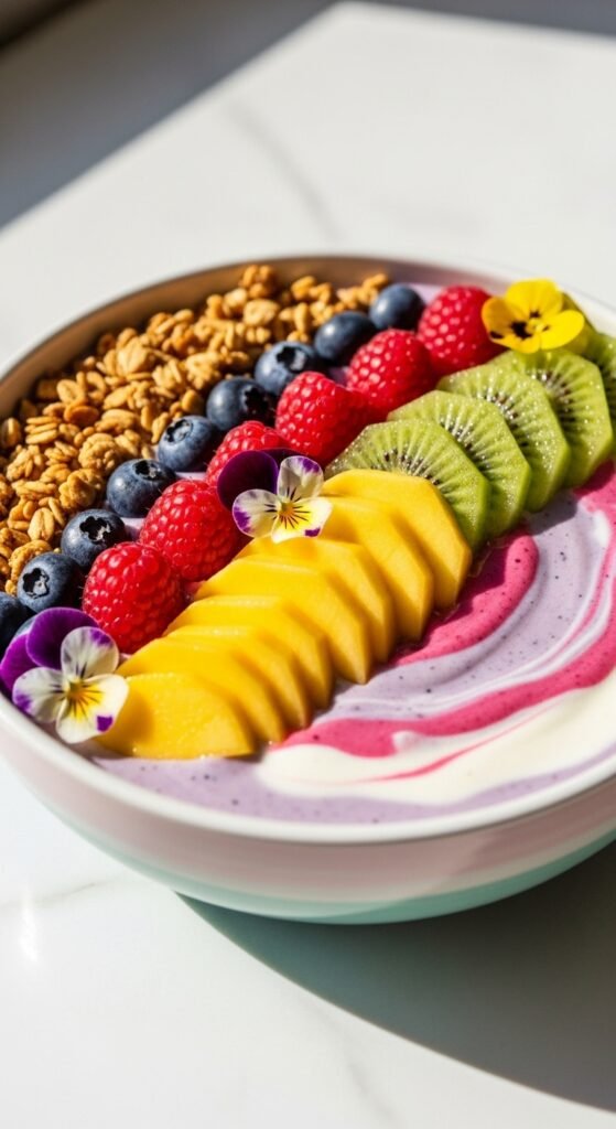 This bowl feels light yet satisfying, with creamy yogurt balanced by fresh fruit sweetness. It’s refreshing while still comforting, making it great for warm mornings or quick starts. The colors alone make it feel inviting.