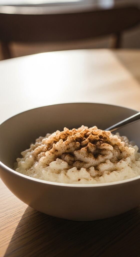 This rice breakfast feels soothing and gentle, offering warmth without heaviness. It’s a comforting option that works especially well on cooler mornings.