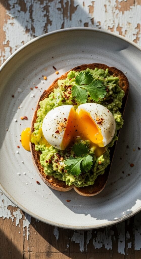 This avocado toast feels comforting yet fresh, with creamy avocado balanced by the richness of soft eggs. The textures work together beautifully, making every bite satisfying without feeling heavy. It’s simple but feels thoughtful, perfect for slow mornings.