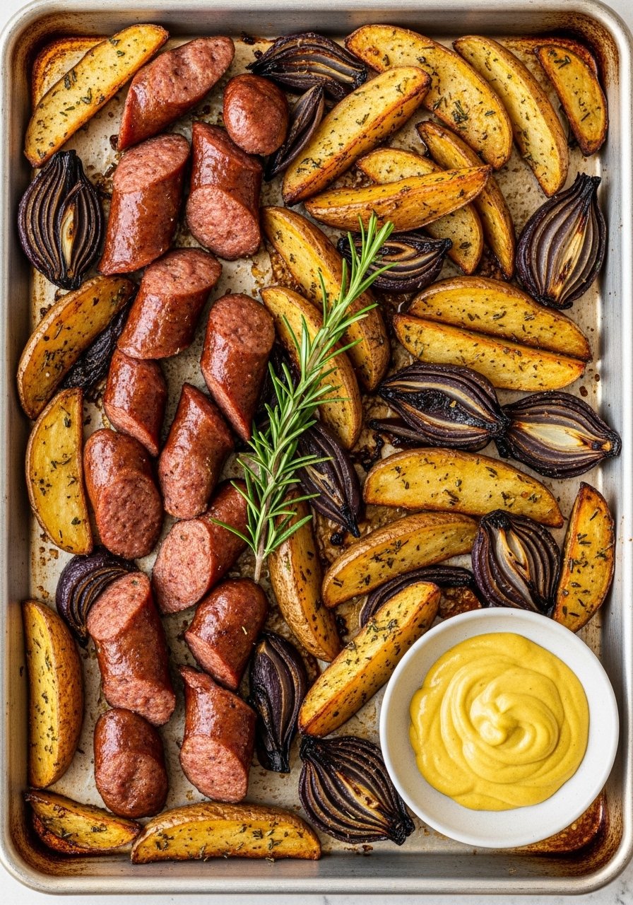 - Roast an additional 12–15 minutes until potatoes are tender and sausage is browned.
