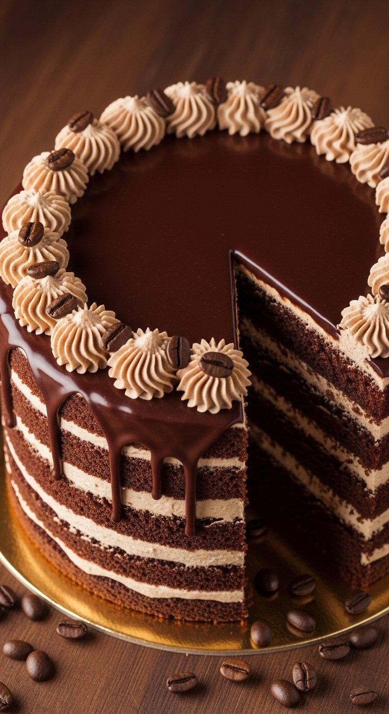 This is a crowd-pleasing chocolate cake with a coffee punch. Espresso powder in the batter deepens chocolate flavor; the mocha buttercream and ganache add a silky finish. It’s perfect for coffee lovers and pairs well with dessert cocktails or a robust cup of drip coffee.