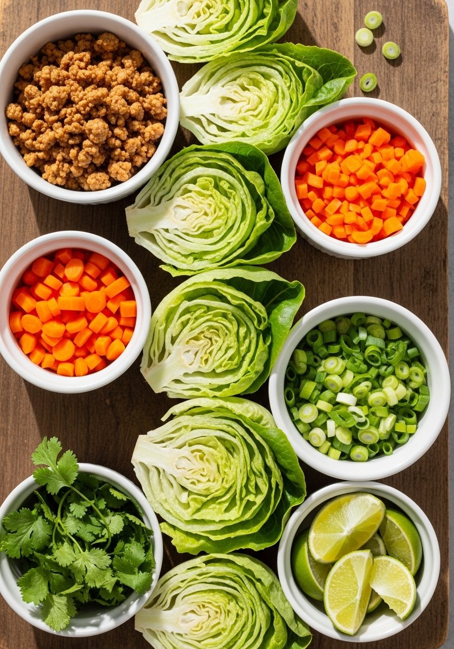 These lettuce wraps are bright, crunchy, and endlessly customizable. Ground chicken stays moist with a quick sauté flavored by garlic, ginger, and lime. The lime drench brightens each bite, keeping the dish flavorful without heaviness.