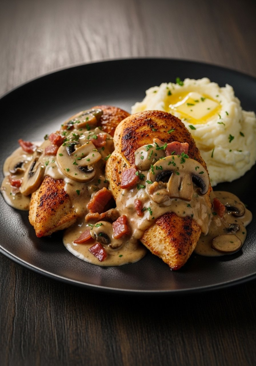 7. Smothered Chicken with Bacon and Mushroom Gravy