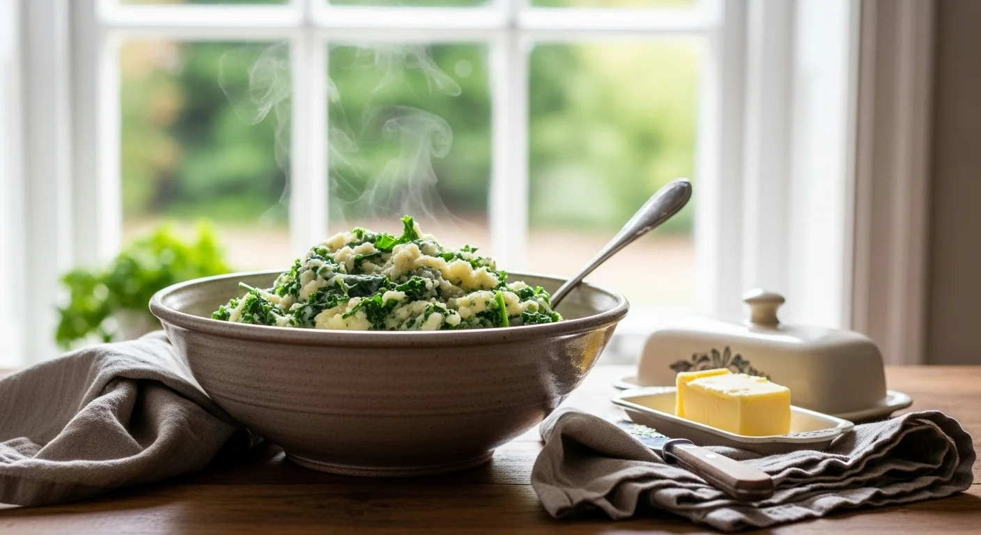 This version swaps kale for tender green cabbage, giving the dish a slightly sweeter and softer texture. The cabbage blends smoothly into the potatoes, making every bite creamy and comforting. It’s a familiar variation that feels just right for weeknight meals.