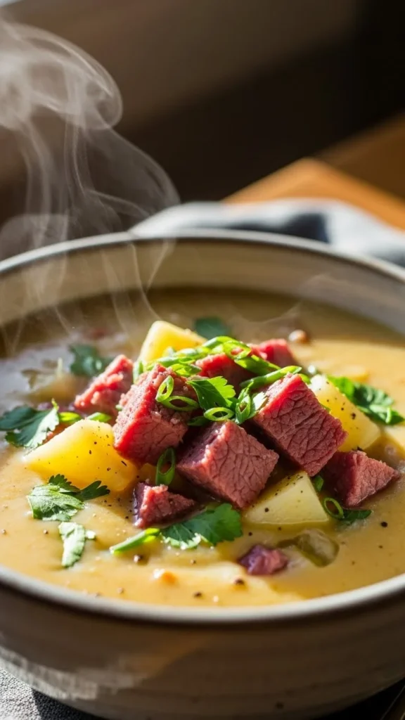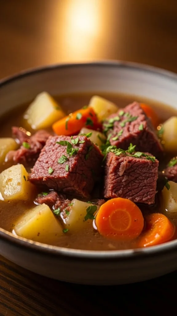 This stew is cozy, hearty, and perfect for slow afternoons when you want something filling. The corned beef blends into the broth, giving it rich flavor that complements the vegetables. Everything simmers into a warm, comforting bowl that feels like traditional home cooking. It’s great for feeding a group and makes wonderful leftovers.
