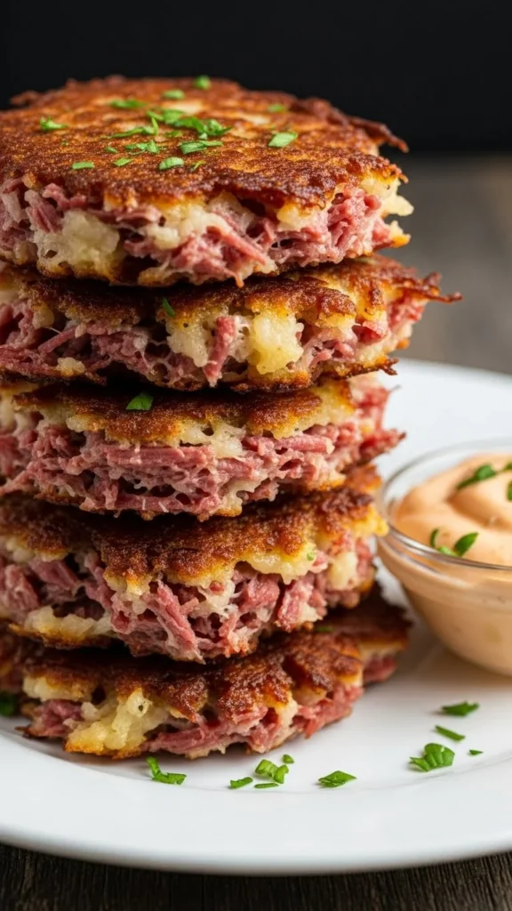 These cakes offer crisp edges and soft, savory centers that make them satisfying and easy to enjoy. The mashed potatoes hold everything together, while the corned beef brings depth and warmth. They’re simple to cook and use everyday ingredients. Great as a snack, side dish, or even breakfast item. They fry quickly and taste fantastic with dips.