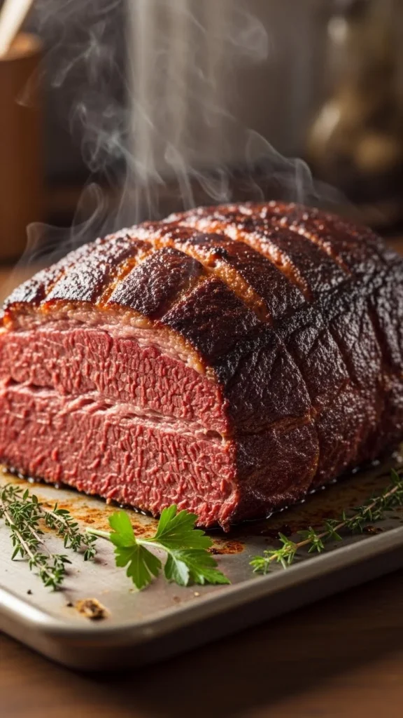 This version is all about simplicity, warmth, and melt-in-your-mouth slices that taste like a weekend feast even on a weekday. It’s perfect for anyone who wants the traditional texture—tender inside with crisp edges—without complicated steps. The gentle baking time lets the seasoning blend into the meat beautifully. Serve it for family gatherings or quiet nights when you want something hearty. It’s a dependable favorite that works with almost any side.