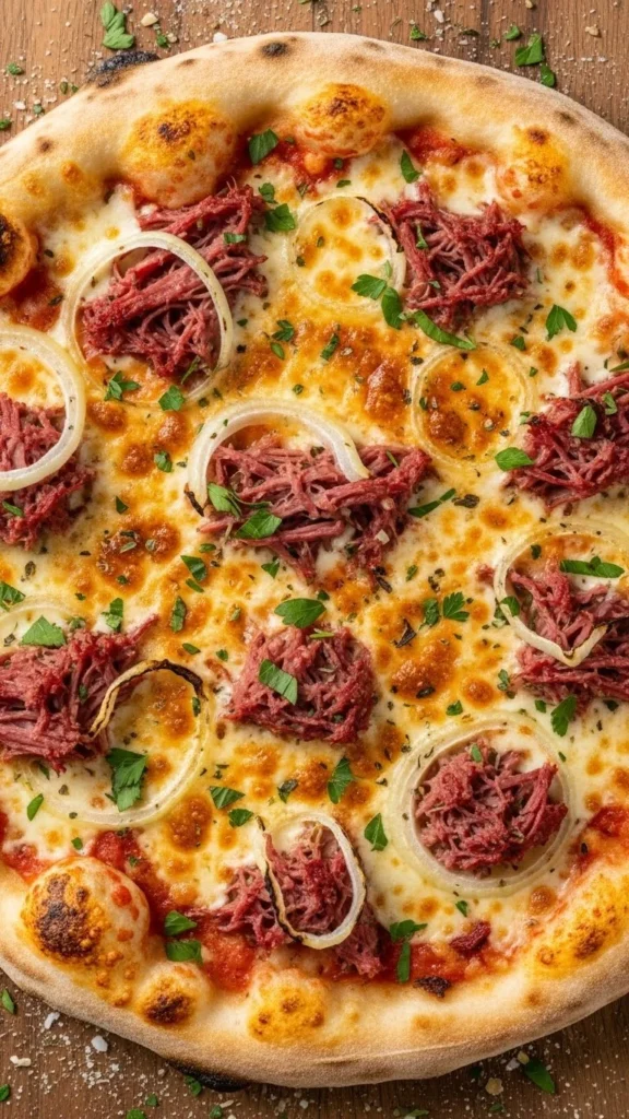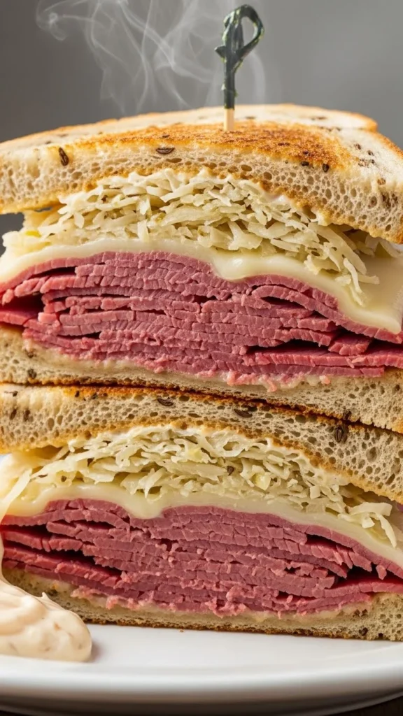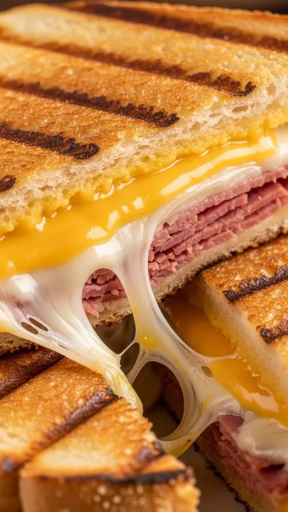 This sandwich is the comfort-food champion of corned beef dishes—gooey, tangy, crunchy, and savory all at once. The melting cheese brings everything together, while the sauerkraut adds a satisfying contrast. Rye bread gives each bite warmth and texture. It’s quick to make and perfect for lunch or a simple dinner. Every bite feels hearty, filling, and satisfying.