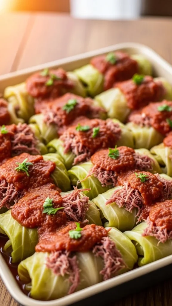 Top with herbs for color. Serve with mashed potatoes or bread. Spoon extra sauce over each roll. Pair with steamed vegetables. Great for warming, hearty meals.
