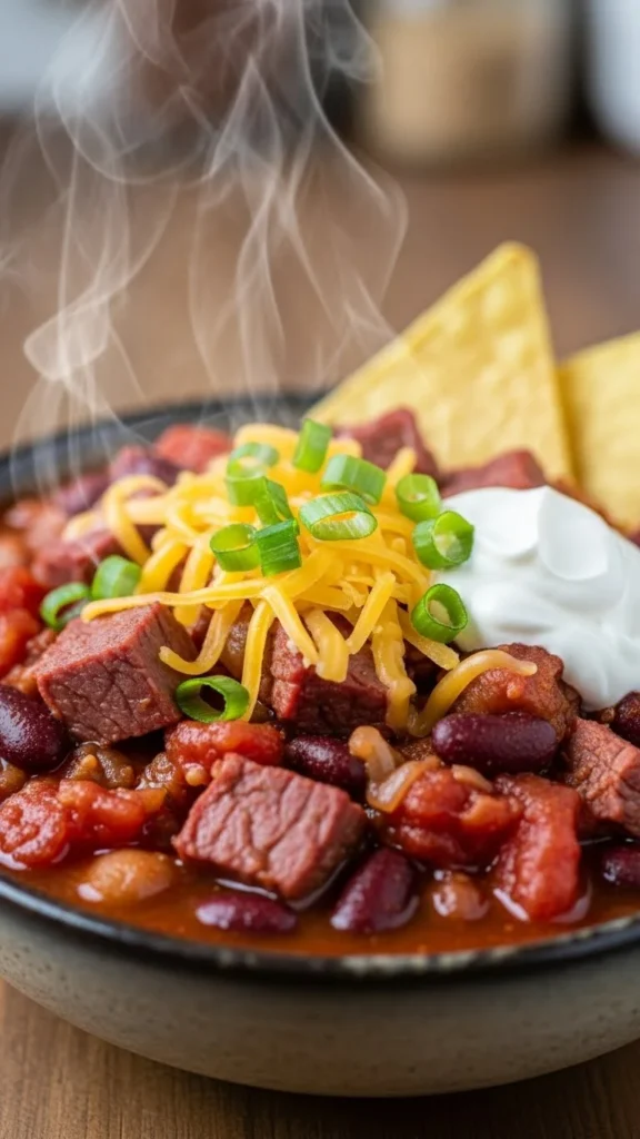 This chili brings a rich twist by using corned beef instead of traditional meat. It cooks into a thick, comforting bowl of warmth perfect for chilly days. The spices blend well with the savory meat, creating a balanced pot that simmers easily. It feeds a group and works great for leftovers. A great slow-simmer dish for relaxed afternoons.