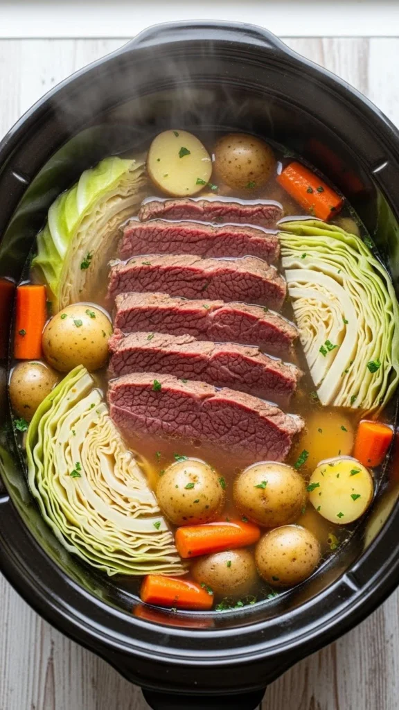 2 Slow Cooker Corned Beef & Cabbage