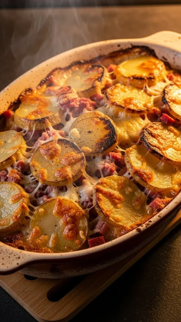 This gratin is rich, cozy, and layered with hearty flavor, making it perfect for days when you want something warm and filling. The thin potatoes soak up the creamy sauce, and the corned beef adds savory depth without overpowering the dish. It feels special while still being easy enough for everyday cooking. The top turns beautifully crisp while the inside stays tender. It’s a great comfort dish for cold evenings or family dinners.