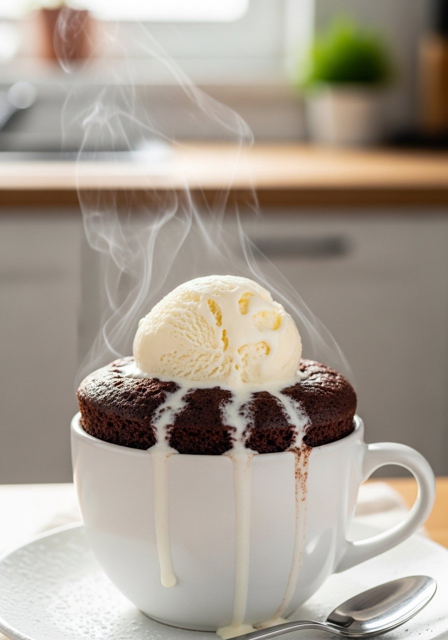 Top with a scoop of ice cream or whipped cream and a dusting of cocoa. If you want a neater presentation, invert onto a plate or use a small ramekin before microwaving. For storing, mug cakes are best eaten the same day.