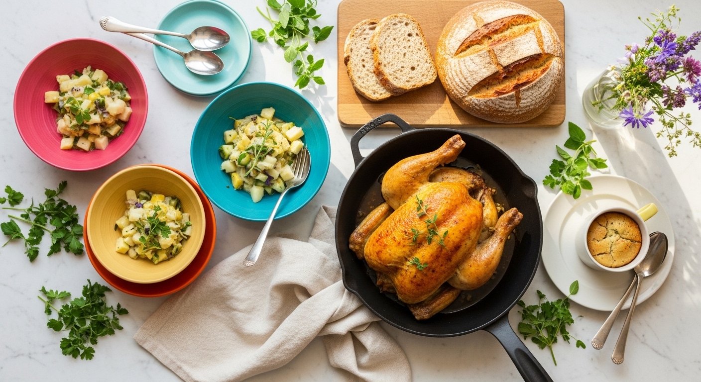 Serve straight from the skillet for rustic appeal. Garnish with extra lemon wedges and chopped parsley. Pair with a crisp green salad or steamed green beans. Leftovers keep well in airtight containers for up to 3 days—reheat gently in a skillet to bring back crispness. If you’ll be roasting often, a silicone hot handle cover helps when bringing the skillet to the table.