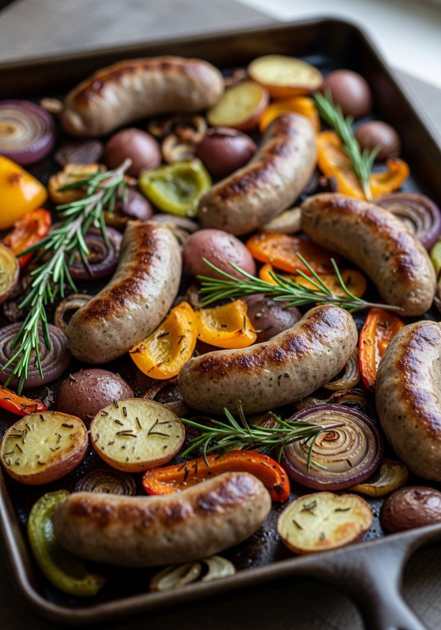 This one-pan sausage, peppers, and potatoes bake is ideal for busy evenings—assemble on a sheet pan, freeze flat, then pop in the oven for a single-dish meal. The potatoes roast crisp while sausages brown, and the peppers add sweetness. It’s a crowd-pleaser that reheats well and keeps the kitchen cleanup tiny.