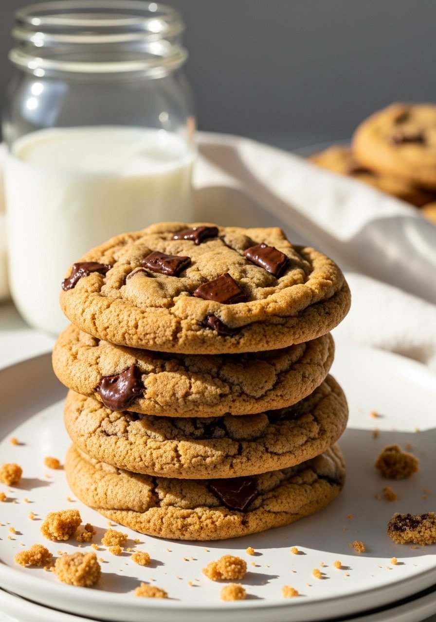 These cookies are soft in the center with slightly crinkled tops and crisp edges — the texture most people expect from classic chocolate cookies. Brown sugar and a touch of cornstarch make them chewy, while the mix of dark chocolate chunks gives pockets of melty richness. Perfect for lunchboxes, cookie swaps, or a late-night bite.
