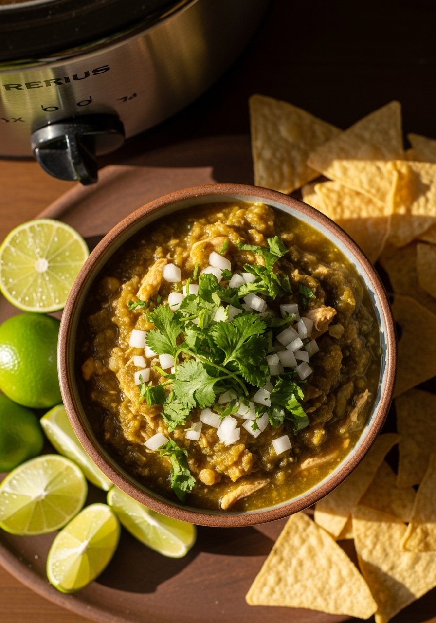 This hearty chicken chili verde is tangy, mildly spicy, and perfect for a set-it-and-forget-it weeknight. Tomatillos and green chiles make a bright sauce, while slow-cooked chicken shreds easily into the mix. Serve with gluten-free corn tortillas for a filling meal.