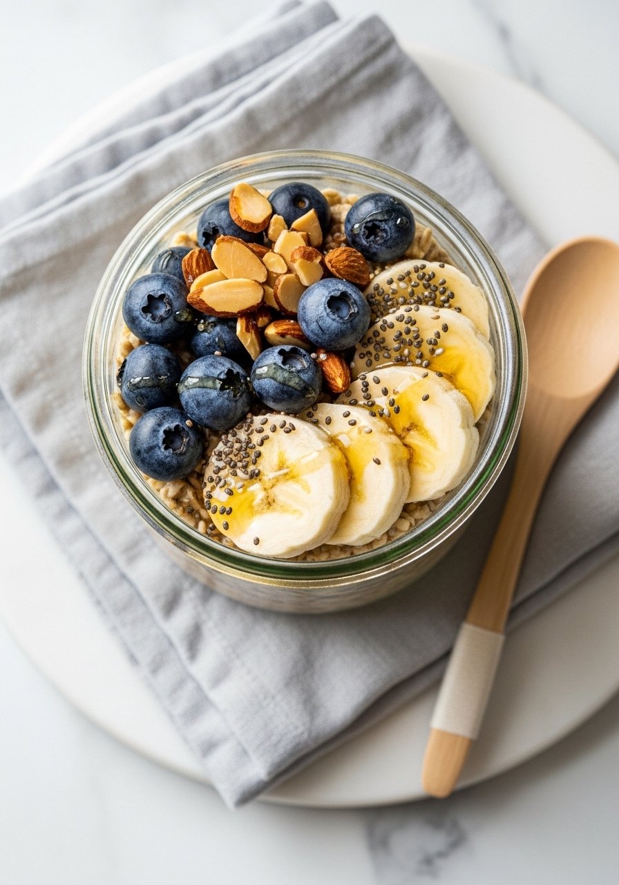 Breakfast built for digestion—this overnight oat bowl blends rolled oats, chia, and flax for texture, plus creamy yogurt and fruit. It’s slightly sweet, nutty, and silky, perfect for busy mornings or chilled brunches. You’ll love the chew from oats and crunch from toasted almonds. I like to prep jars the night before so the oats soak overnight and flavors mingle.