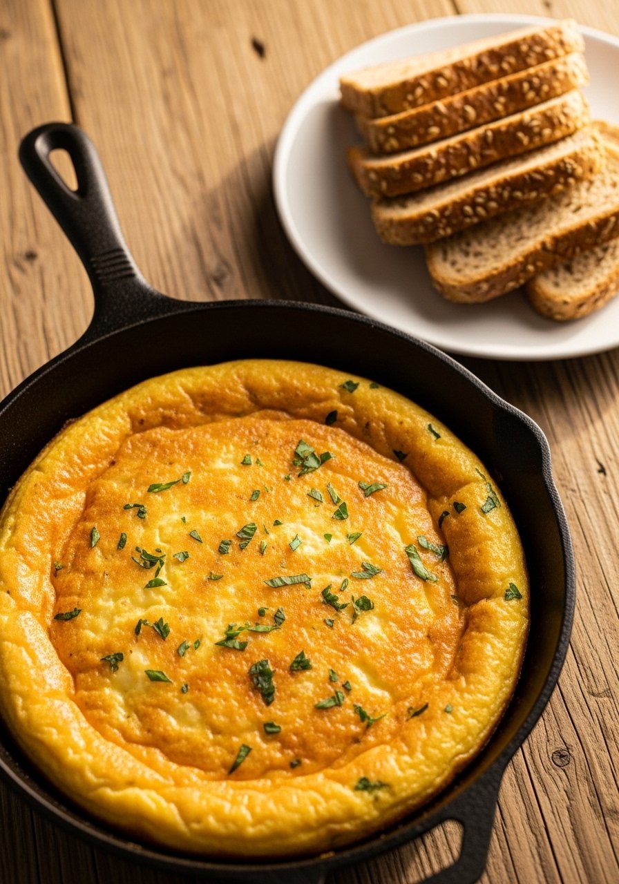 Serve slices with toasted whole-grain bread and a side salad. Store leftovers in airtight containers in the fridge for up to 3 days—reheat gently in a skillet or microwave. Make-ahead: bake frittata the night before and rewarm for 6–8 servings across two days.