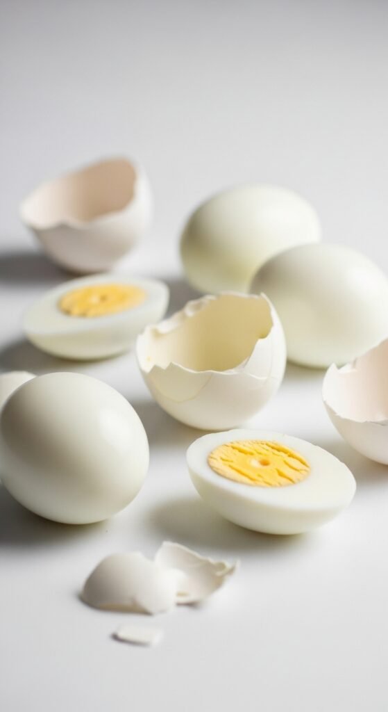 - Use slightly older eggs (5–7 days old); they peel far better than fresh ones.