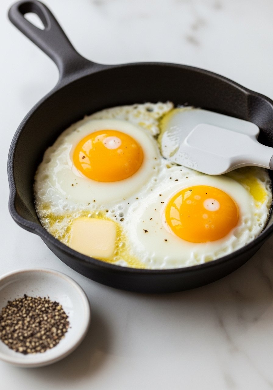 • For crispy edges, heat butter until it starts to brown, then add eggs; watch closely to avoid burning.