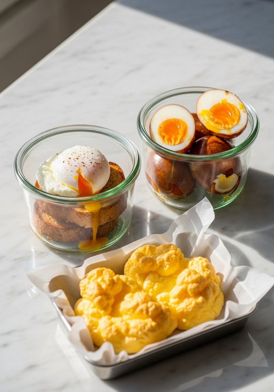 • Whip whites to soft peaks, fold in yolk, bake on a parchment-lined tray for 6–8 minutes at 375°F.