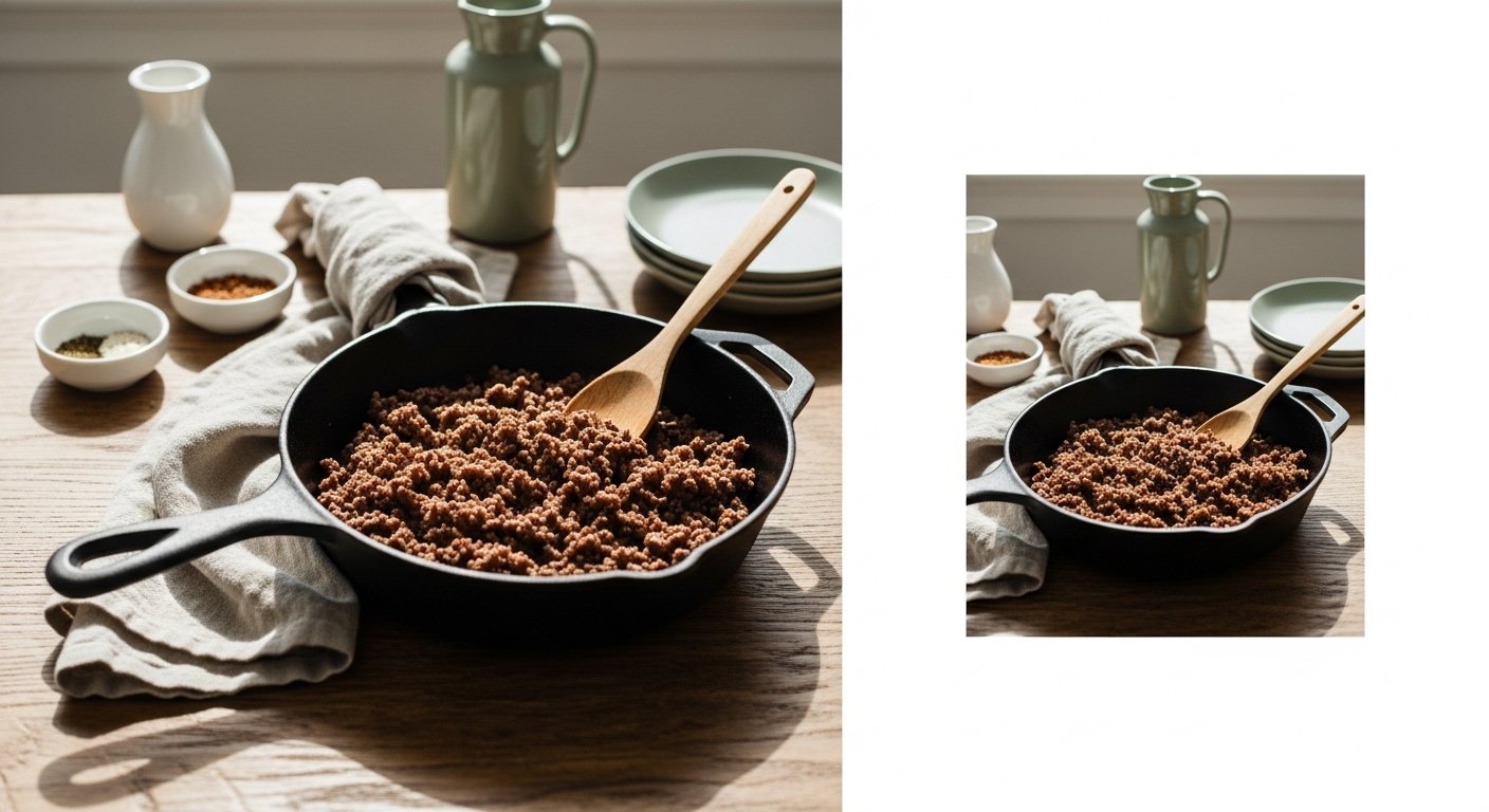 A few small changes make a big difference: start with 80/20 ground beef, don’t overcrowd the pan, and finish with a splash of liquid to lock in moisture. I use a Lodge 10-inch cast iron skillet for great sear and an instant-read thermometer to check doneness. Follow the steps below and you’ll stop overcooking meat for good.