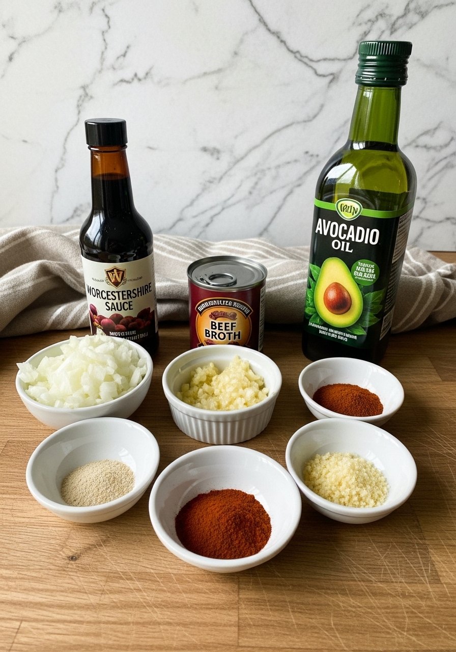 Start smart so the cooking step is simple. Use 80/20 ground beef (higher fat prevents dryness) and measure flavor boosters ahead of time.