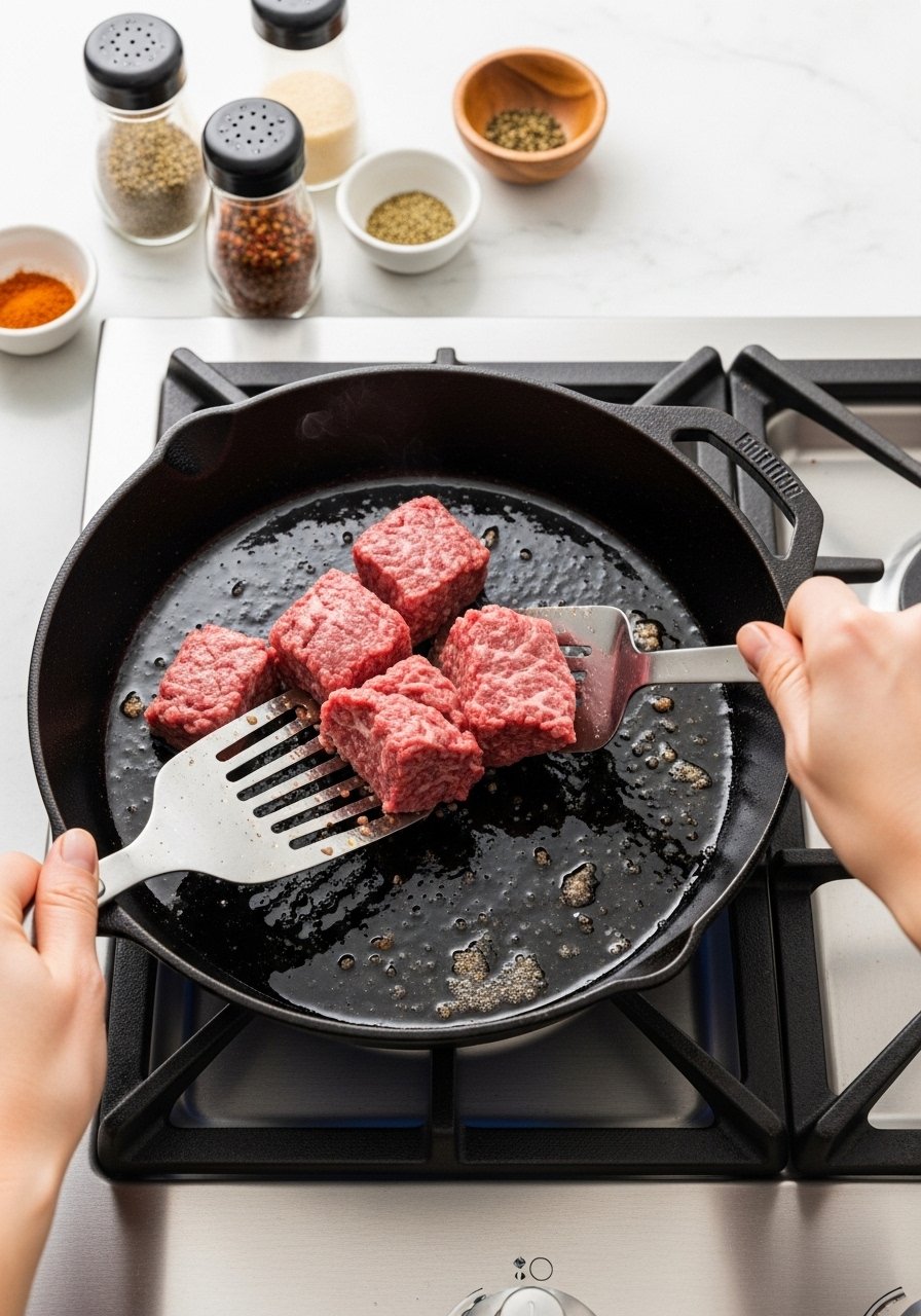 - Let the meat sear untouched for 2–3 minutes to get crispy golden edges.