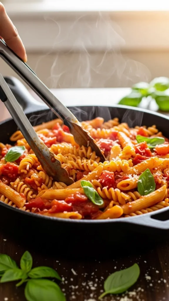 - Skillet or sauté pan → finishing pasta in sauce