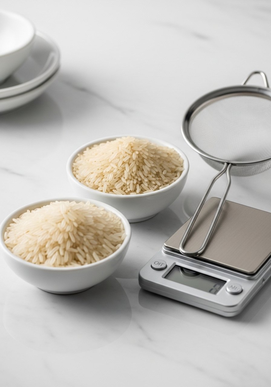 1. Measure rice with a digital kitchen scale or measuring cups. For consistency use weight when you can — 1 cup (200g) dry rice is a good starting point.