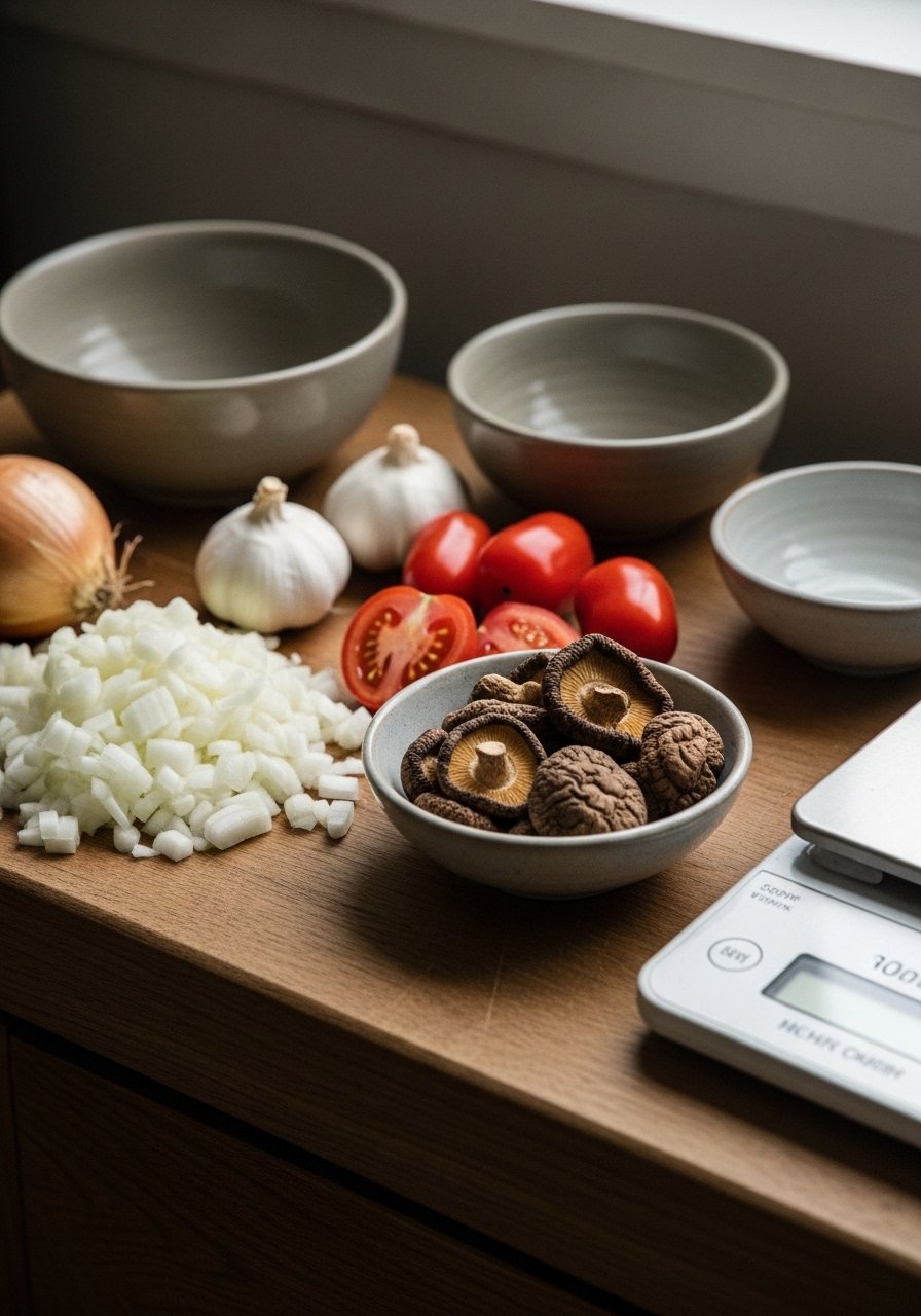 - Dry shiitake add umami — rehydrate 1 oz dried shiitake in hot water for 20 minutes. Try dried shiitake mushrooms for depth.