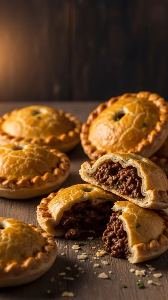 Serve with a small bowl of relish or mustard. Add parsley for brightness. These pasties hold heat well, making them great for longer events.