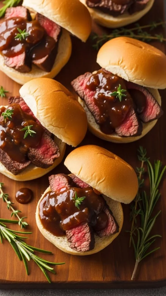 These sliders feature tender steak cooked in a rich ale gravy, giving guests a hearty, flavorful sandwich that’s easy to enjoy with one hand during a party.