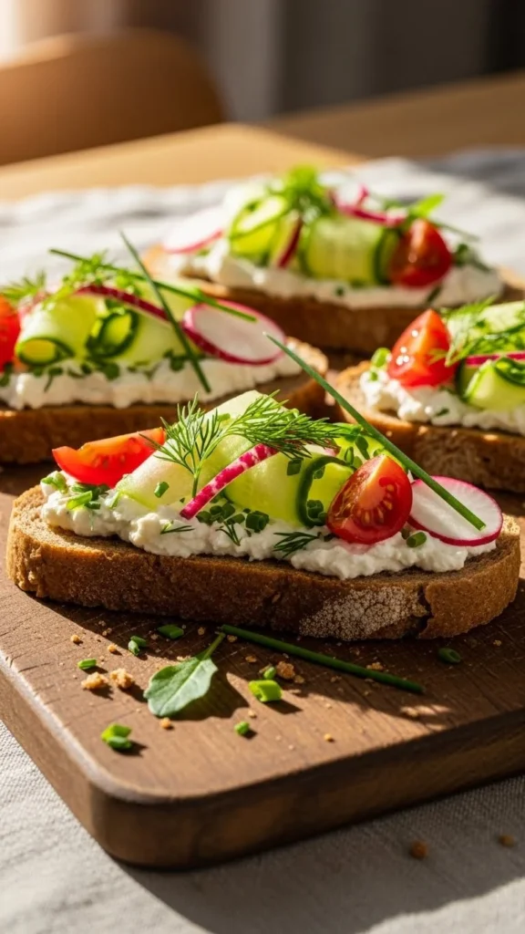- Assorted toppings (cucumber, herbs, smoked salmon)