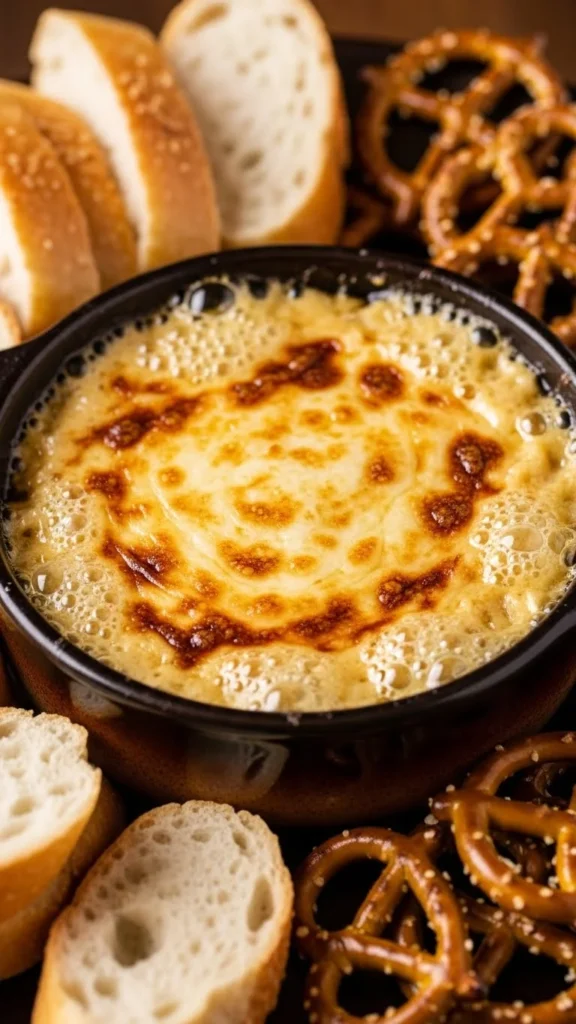 This creamy, rich dip blends sharp cheddar with stout for a deep, savory flavor that pairs perfectly with bread, crackers, and veggies, making it ideal for dipping at parties.
