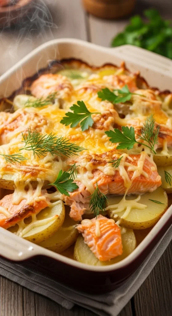 This Irish potato and salmon bake combines two classic ingredients into a hearty and flavorful dish. The richness of the salmon pairs wonderfully with the creamy potatoes, making it a perfect dinner option for seafood lovers.