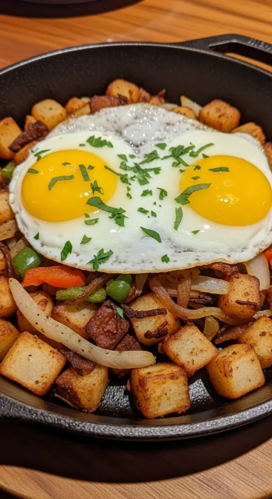 This Irish potato and egg breakfast skillet is a filling and flavorful way to start your day. The crispy potatoes, paired with runny eggs, create a satisfying meal that’s perfect for breakfast or brunch.