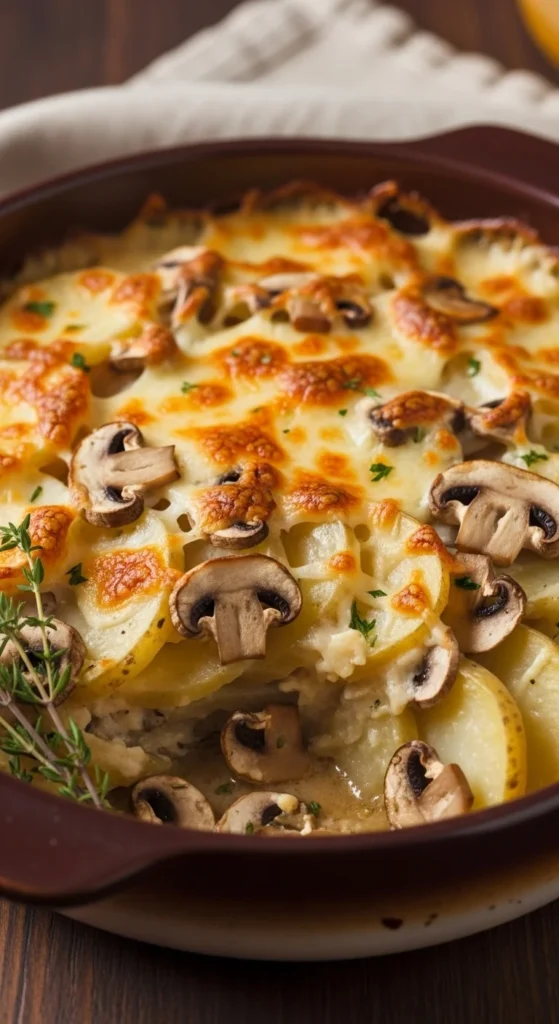 This hearty potato and mushroom bake is perfect for a satisfying vegetarian meal. The earthy mushrooms add a savory depth to the creamy potatoes, making this dish rich and comforting.