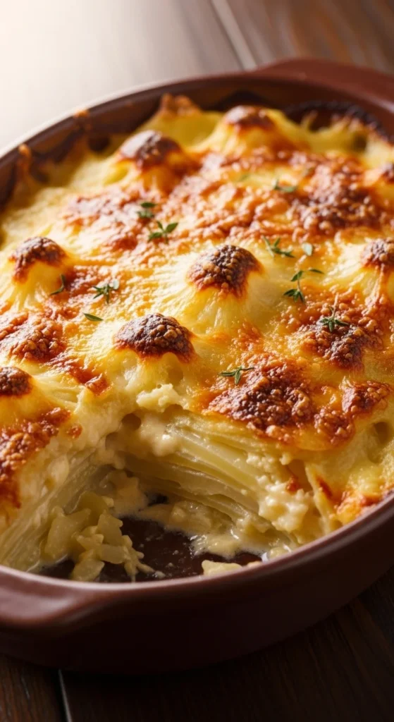 Serve as a side dish to roasted meats or enjoy it on its own as a comforting meal. A simple salad or steamed vegetables pairs well with this rich gratin.