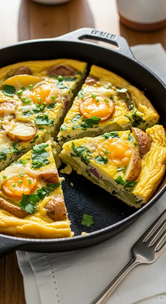 An Irish potato frittata is a great way to use leftover potatoes. It’s packed with flavor and can be served for breakfast, brunch, or dinner. The fluffy eggs combined with potatoes and herbs make this dish irresistible.