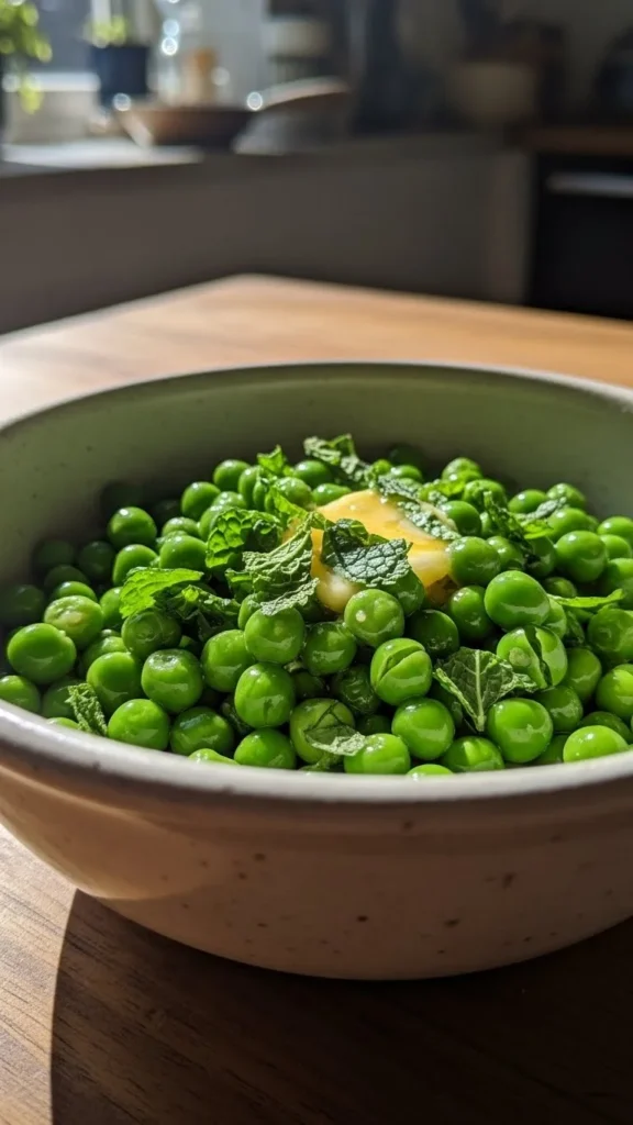 Serve beside fish, chicken, or lamb. Add lemon zest for a citrus touch. Great for spring feasts. Works well with roasted potatoes. Serve immediately to keep peas bright and plump.