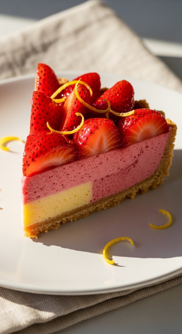 This twist on tiramisu swaps coffee for strawberry syrup and layers light mascarpone cream with soft ladyfingers and juicy berries. It’s family-friendly, fragrant with vanilla and a touch of citrus, and perfect for a picnic or casual dinner. If you like light, creamy desserts with a fruity lift, this one’s for you.