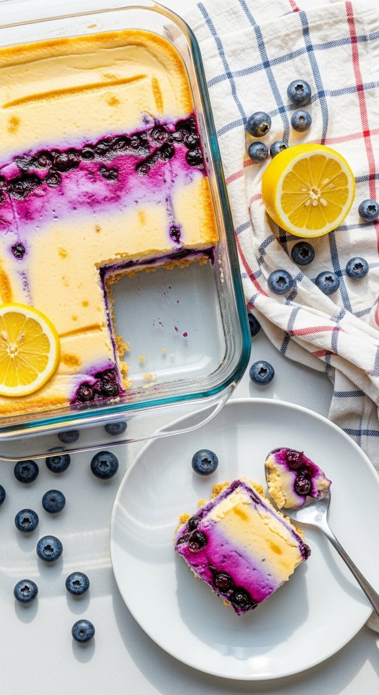 Think of this as a tangy, layered no-bake cheesecake lasagna—easy to assemble and ideal for potlucks. A buttery crushed cookie base holds lemony mascarpone layers and swirls of blueberry compote. The lemon brightness keeps the sweetness in check, and the layers slice clean when chilled properly. Use a 9×13-inch pan for even portions.