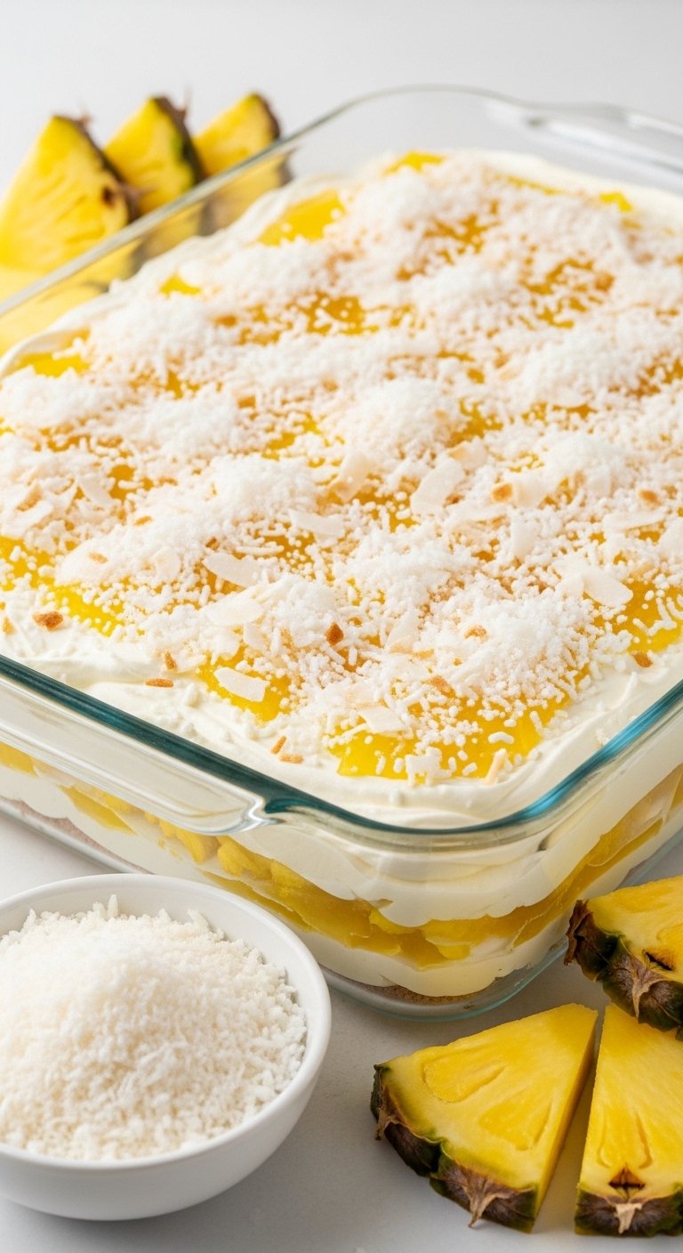 5. Piña Colada Lasagna (Tropical Layered No-Bake Dessert)