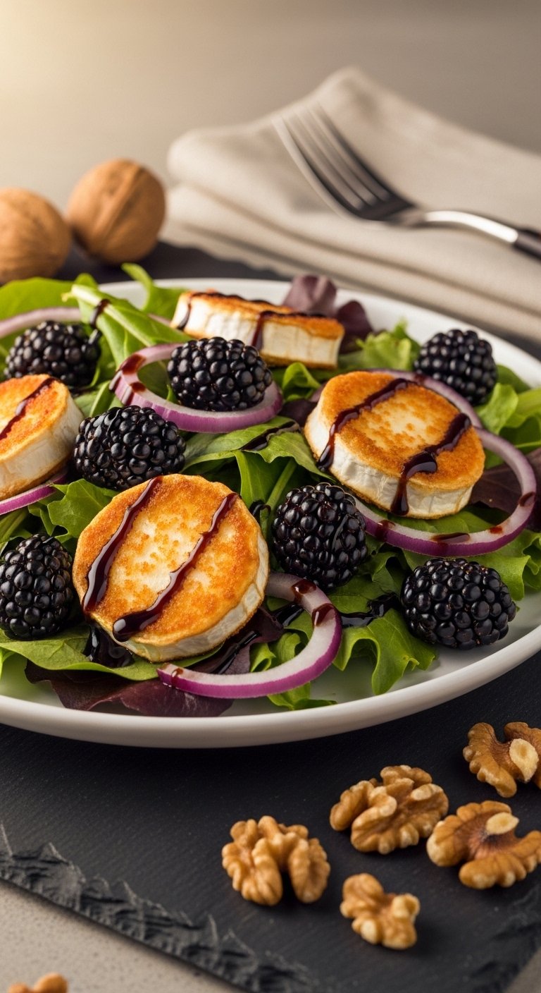 This salad flips the script on boring greens by pairing jammy blackberries and a super-crisp fried goat cheese round. You get sweet-tart fruit, crunchy walnuts, and a creamy center that breaks in the mouth. It’s great for a cozy dinner or as a winter-y starter. The fried cheese adds a bakery-like crunch—you’ll win over anyone who thinks salads are dull.